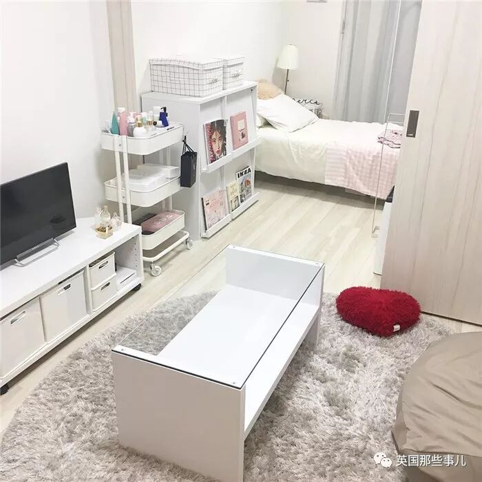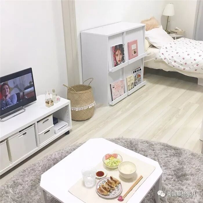 位于东京的这个住处,面积约15平方米,小姐姐觉得白色看起来比较简约而不失品味,所以挑选的家具和物品也大多是白色。