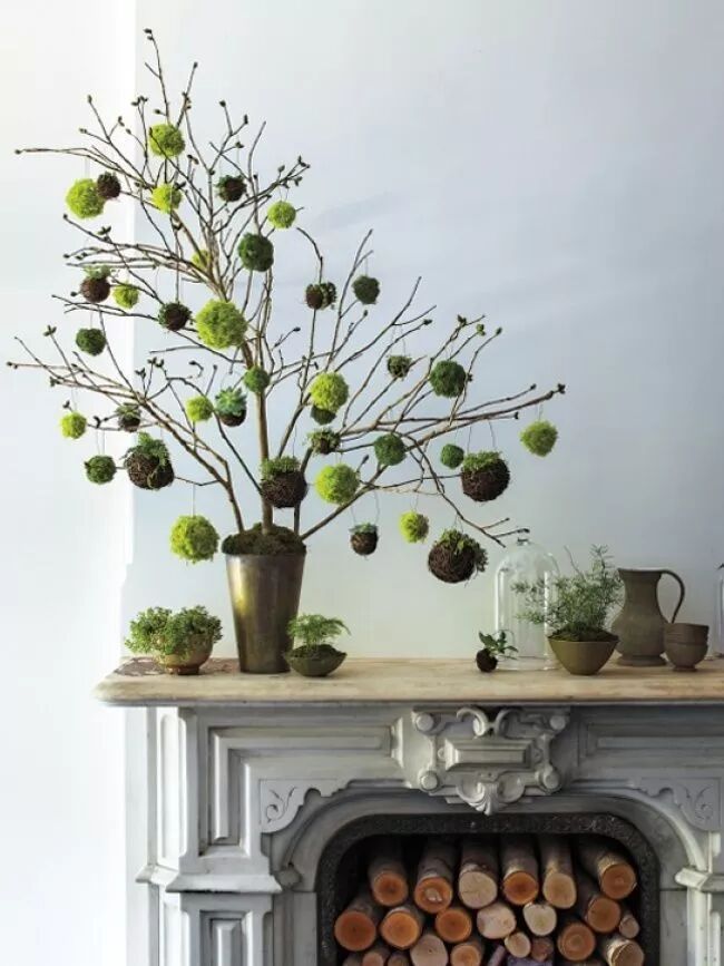 家长和孩子们一起布置一下家的环境吧,营造春天的氛围。 家里找一些毛球或者用废旧毛线搓成小球,粘在树枝上。摆放在家里的小角落,特别有春天含苞待放的感觉。