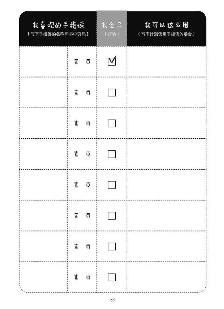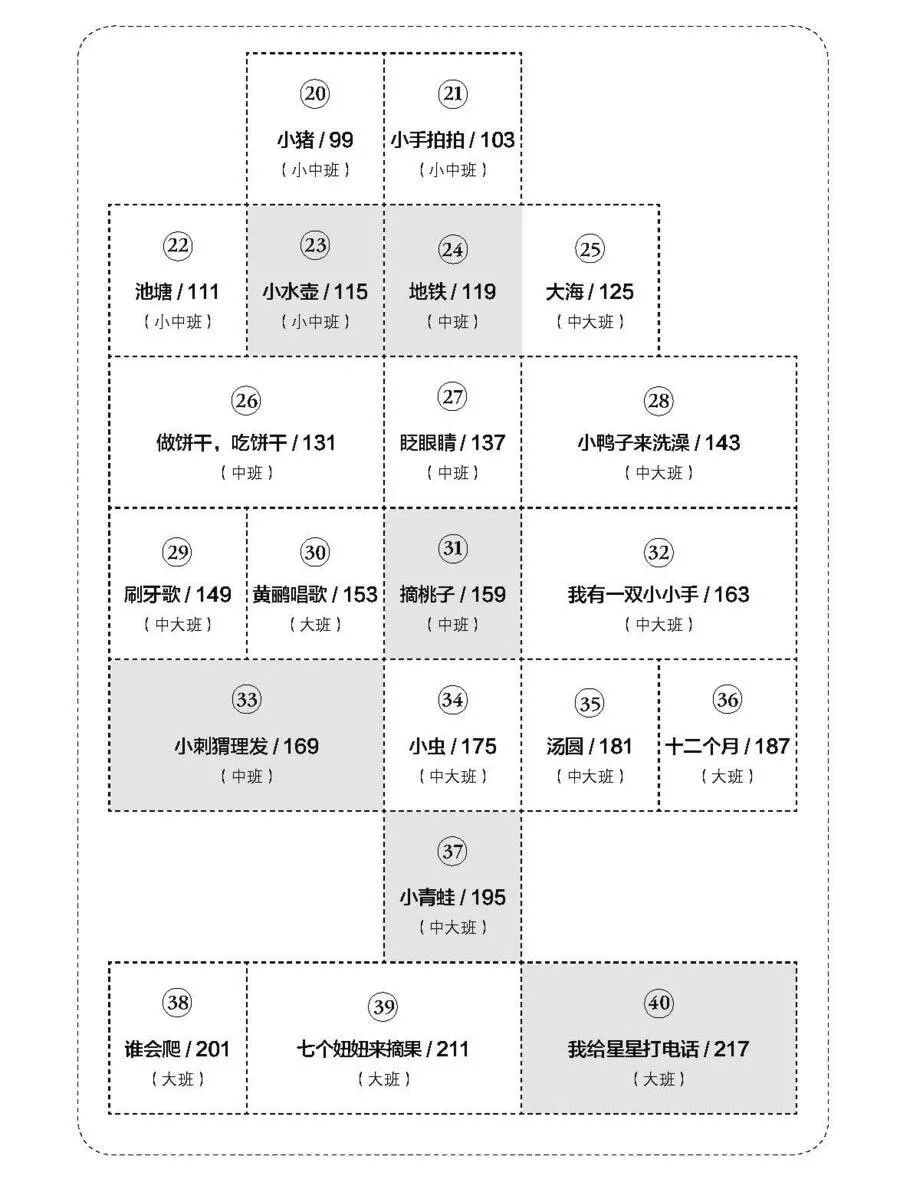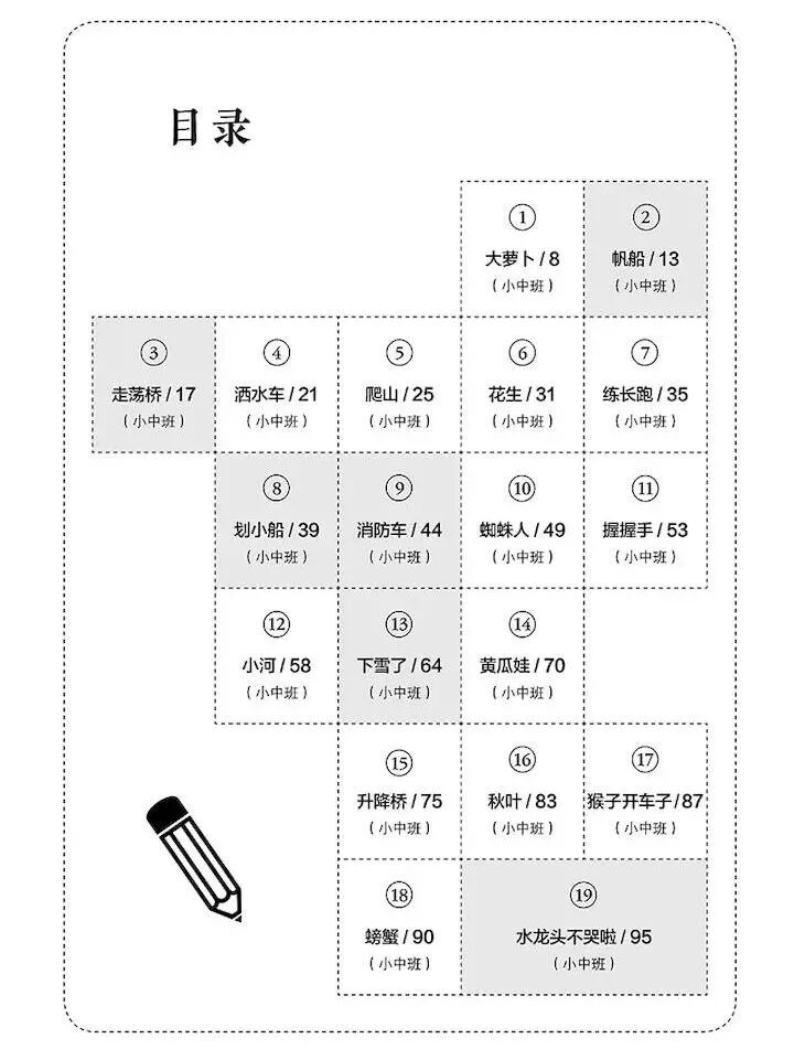 贴心的目录册,还帮老师标注了不同年龄段的适用手指谣,大中小班都能用,真正成为能陪伴你带班的实用宝典!