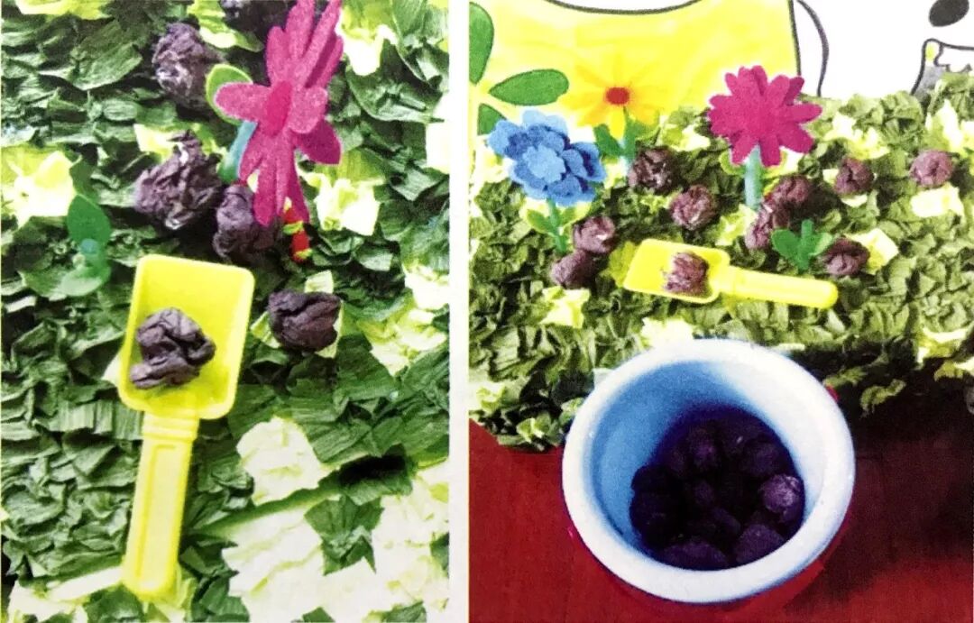幼儿在操作中能初步感受“趣味开心农场”的内容,各种材料的提供既能体现玩法多样性又能发展小班幼儿的手眼协调能力、小肌肉动作和对粗细、大小等概念的初步感知。