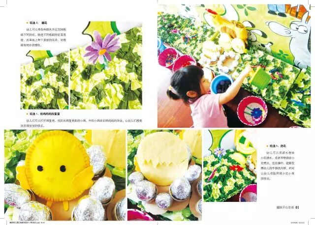 幼儿们可以打开鸡蛋壳,找到在鸡蛋壳里的小鸡,并把小鸡送到鸡妈妈的身边。让幼儿们感受找到鸡宝宝的快乐。