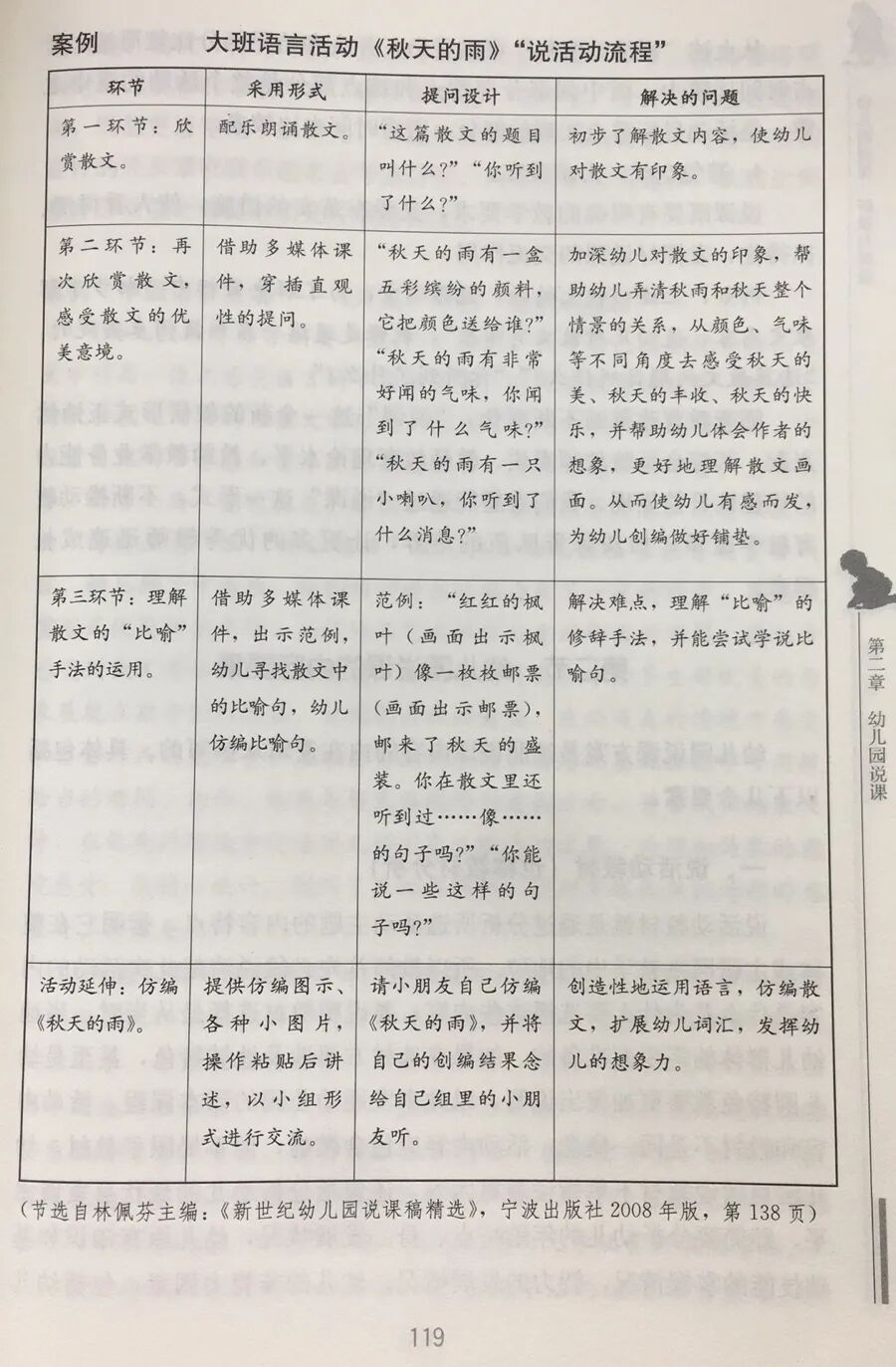 《幼儿园说课听课与评课》与幼儿教师们一起感受在教学设计过程中如何说出你的教学思想与教学理念,如何感受同行的教学并进行教学中的交流与沟通,如何在沟通中提升自己的教学水平。