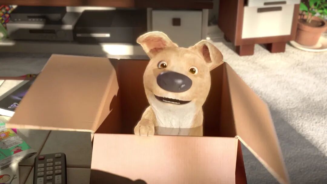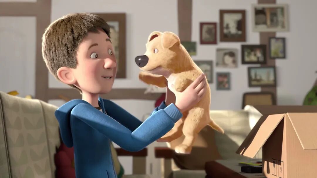 小男孩收到礼物,是一只断腿的狗,起初厌恶至极。之后,被狗的积极乐观打动,出去玩耍。出人意料的是,在最后出去时,才发现男孩是个残疾人……