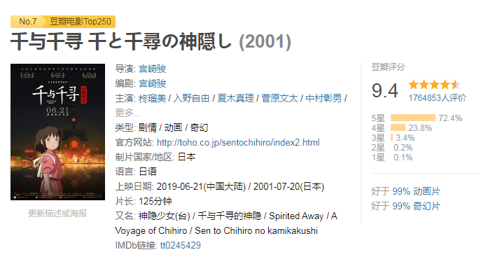 这是一部能给与大人、小孩心灵冲击的一部影片。故事抽象而简单,却让人无限回味,千寻的坚强和人性的光芒一定程度上折射了儿童与其父母之间的不同价值观和世界观。