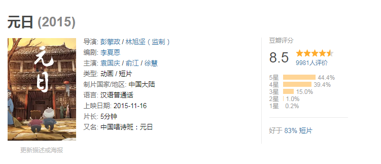 中国唱诗班的作品都很经典,这个系列还有《相思》《饮湖上初晴后雨》等短片,都值得带娃一看。