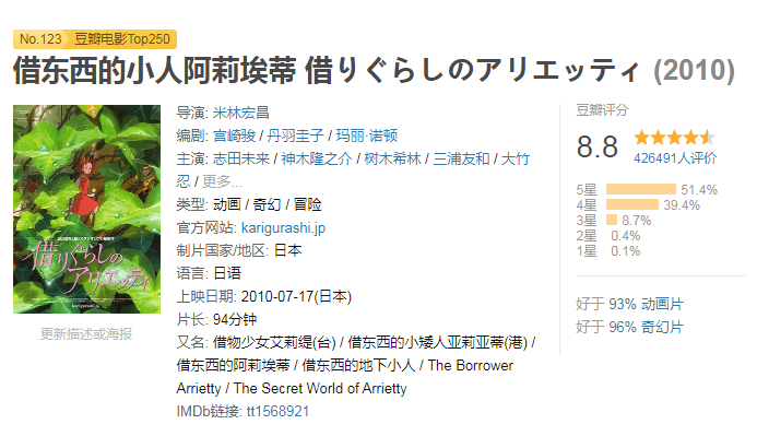《借东西的小人》是英国作家玛丽·诺顿(1903-1992)于2009年10月1日出版的系列童话书,本片根据英国作家玛丽·诺顿的原著改编。