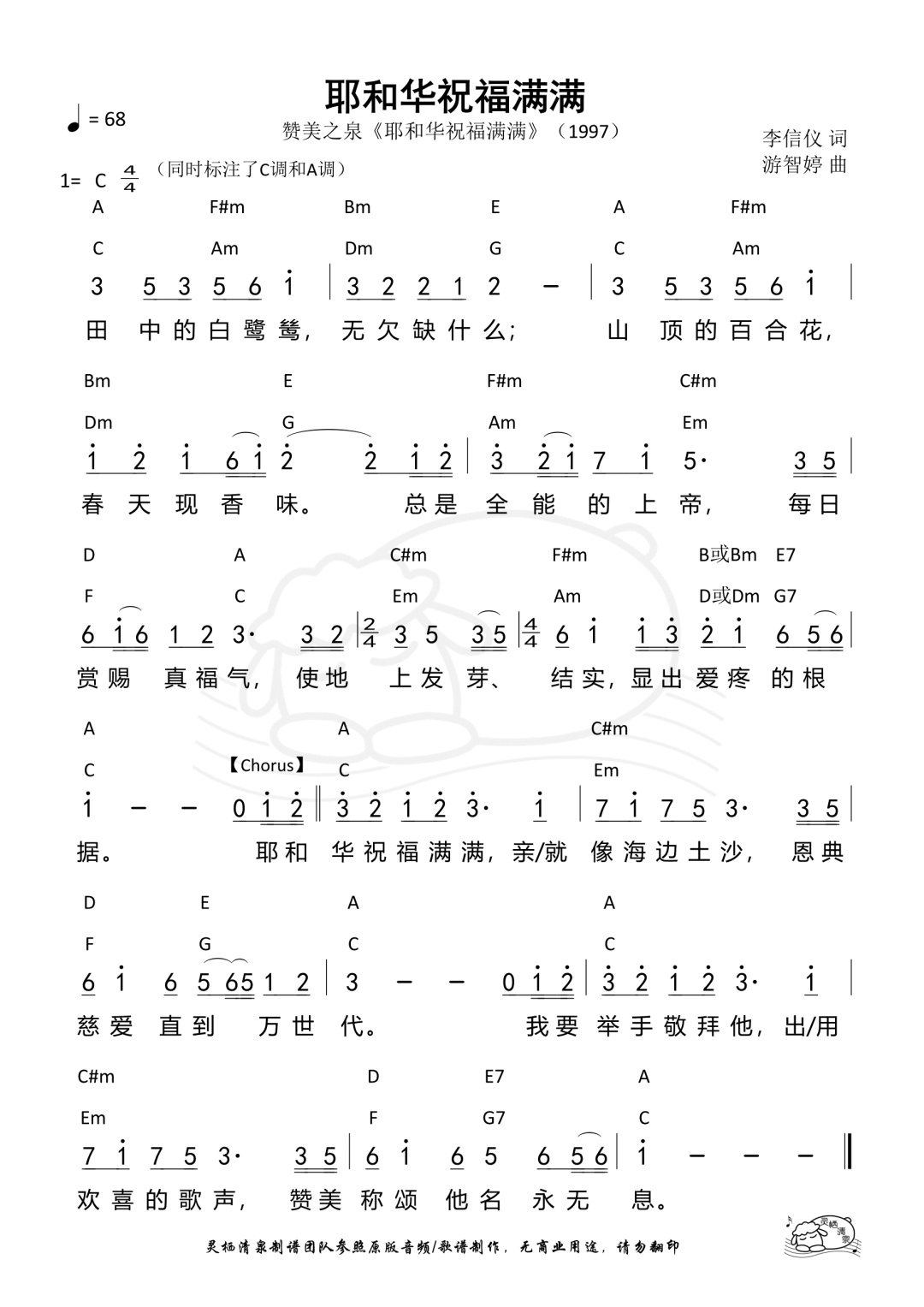 +- 首页 未整理 正文 耶和华祝福满满(闽南语) ©️ 赞美之泉音乐事工 歌名 | 耶和华祝福满满 Artist | 赞美之泉 专辑 | 《耶和华祝福满满 》(1997) 作词 | 李信仪 作曲 | 游智婷 歌词 【Verse】 田中的白鹭鸶 无欠缺什么 山顶的百合花 春天现香味 总是全能的上帝 每日赏赐真福气 使地上发芽结实 显出爱疼的根据 【Chorus】 耶和华祝福满满 亲像海边土沙 恩典慈爱直到万世代 我要举手敬拜他 出欢喜的歌声 赞美称颂他名 永无息 请支持赞美之泉事工:www.sop.org/donation 赞美诗歌未整理以斯拉盛晓玫祝瑞莲生命河灵粮堂小羊诗歌Jesus Image天韵合唱团新酒使命团我心旋律JLSS BlessedThe Hope佳音 赞美之门 收藏 分享 链接