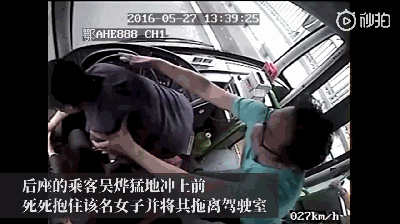 死死抱住该女子并将其拖离驾驶室