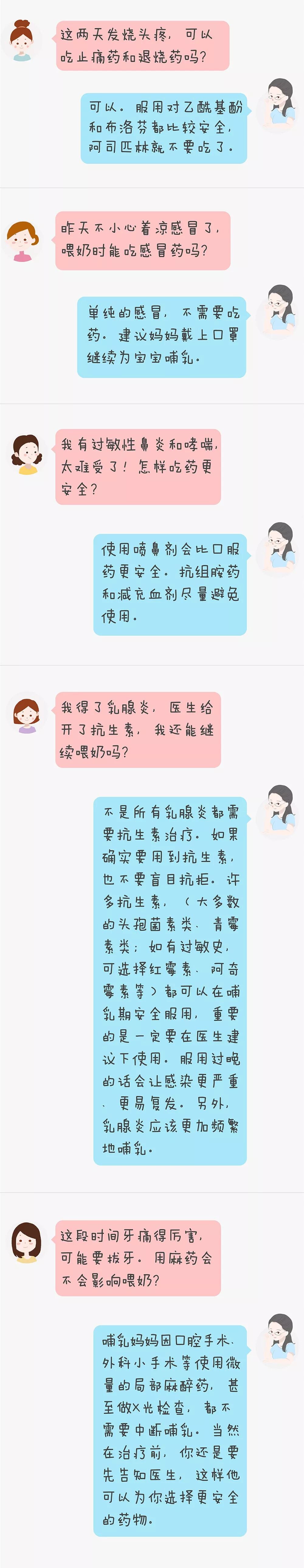 所以说,哺乳期妈妈生病了,当然不是只能强忍着。了解什么情况下必须治疗,哪些药物是相对安全的,才是对自己和家人最大的负责。