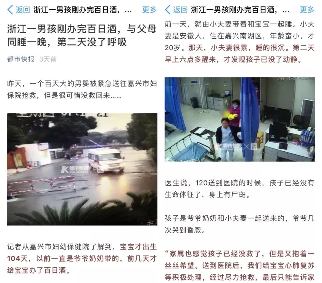 大人十分疲倦时,会降低警觉性,睡得太沉,真压到宝宝的话不堪设想。文章开头的新闻中,孩子爸妈因为醉酒,酿成了不可挽回的悲剧。