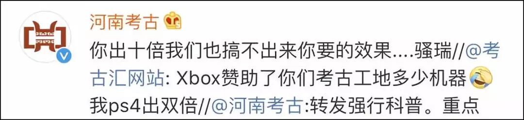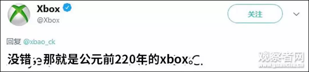 网友这头玩得火热,就连Xbox官方账号也参与了互动,恶搞回应称“这就是公元前220年的xbox。”
