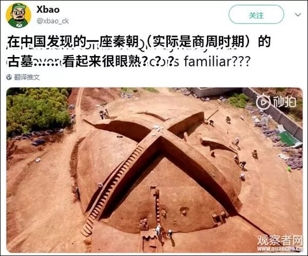 其实古墓上的标志系人为造成,是考古队为了不破坏地形,有意将土墩墓划分为4块,便于进行考古研究。酷似Xbox的商标,纯属巧合。