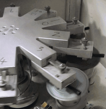 然后刷头要进入一个大转盘,经历切、磨、抛光等步骤。