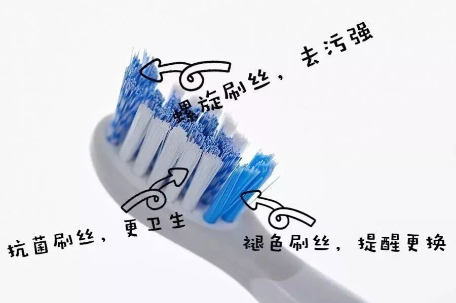 要特别表扬一下这个褪色刷丝,它是可以根据使用时间慢慢褪色哒!刚收到的时候是蓝色,刷了3个月后,会渐渐变成白色,提醒你该换刷头啦~
