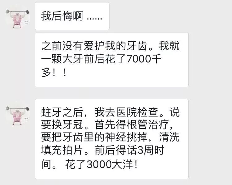 再看看来自身边的例子,同事@静静之前去补了牙,回来跟我们哭诉了好几天∇