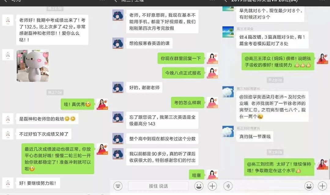 广东高三考生何同学,平时做完形填空至少错16个,得4分。在同学介绍下,加入第16期学习群的她用3天时间学习了12大英语得分技巧——完形填空“倪萍逻辑”、“首句段位呼应”秒杀后,现在做完形填空最多错3个,稳拿17分。