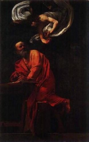 事实上,往往是那些捧读《圣经》最虔诚、最专心的艺术家才试图在脑海中构思神圣事迹的崭新画面。他们努力抛开以往看到的一切绘画作品,开动脑筋想像小救世主躺在牲口槽里、牧羊人前来礼拜他的时候,想像一个渔夫开始宣讲福音的时候,场面必定会是什么样子。一个伟大的艺术家这样竭力用崭新的眼光细读古老的经文,使不动脑子的人感到震惊和愤怒,这种事情是屡屡发生的。激起这种“公愤”的一个典型例子,是卡拉瓦乔惹出的乱子;卡拉瓦乔是一位有大胆革新精神的意大利艺术家,从事艺术活动的时间大约在1600年左右。当时他受命给罗马一座教堂的祭坛画一幅圣马太的像。圣徒应该被画成正在那里写作福音,为了表示出福音是上帝的圣谕,还应该画一个天使正在为他的作品赋予超凡入圣的灵感。卡拉瓦乔当时是个坚定不屈、富于想像的青年艺术家,他苦苦地思索那个年迈的贫苦劳动者,一个小收税人,突然不得不坐下来写书时,场面必然会是什么样子。于是他把圣马太(图15)画成这么一副样子:秃顶,赤着泥脚,笨拙地抓着一个大本子,由于不习惯于写作而感到紧张,焦灼地皱起眉头。在圣马太旁边,他画了一个年轻的天使,仿佛刚从天外飞来,像老师教小孩子一样,温柔地把着这位劳动者的手。卡拉瓦乔把画像交给预定要在祭坛上安放这幅作品的教堂时,人们认为这幅画对圣徒有失敬意,十分愤慨。这幅画像未被采用,卡拉瓦乔不得不重画一幅:这一次他不再冒险了,完全遵从对于天使和圣徒外表的传统要求(图16)。因为卡拉瓦乔惨淡经营力图画得生动有趣,所以第二幅画仍然不失为一幅佳作。但是我们觉得它不像第一幅画那样忠实而真挚。