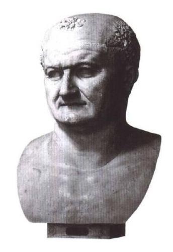 罗马人的典型作法是从希腊建筑中取其所好,然后按照自己的需要加以运用;他们在各个领域中都是这样做的。他们的一项主要需要就是惟妙惟肖的优秀肖像。这样的肖像在罗马的早期宗教中就发挥了作用。在送葬队列中携带先人的蜡像已经成了习惯。几乎可以肯定,罗马人这种做法跟我们从古埃及获知的用肖像保存灵魂的信仰有关。后来,当罗马成为帝国时,皇帝的胸像还是受到宗教性的敬畏。我们知道每一个罗马人都得在皇帝的胸像前烧香表示自己的赤诚忠心;我们还知道基督教徒就是因为不肯服从这项要求而开始遭受迫害。奇怪的是,尽管当时肖像有这么严肃的含义,罗马人却依然允许他们的艺术家把肖像制作得比希腊人所曾尝试制作的一切肖像更为真实而不加美化。大概他们有时使用以石膏套取的死者面型,所以对于人的头部结构和面貌有惊人的了解。无论怎样说,我们都很熟悉庞培(Pompey)、奥古斯都(Augustus)、泰特斯(Titus)或尼禄(Nero),几乎就像是在新闻片中见过他们的面孔一样,维斯佩申(Vespasian)的胸像(图76)丝毫没有讨好之处——根本无意于把他表现为神。他的形象有如富有的银行家或航运公司老板。尽管如此,这些罗马肖像却毫无猥琐之处。艺术家设法成功地实现了既逼真又不平凡。