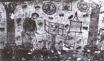 另一个懂得把它的神圣事迹描绘出来以教诲信徒的东方宗教是犹太人的宗教。犹太法(Jewish Law)实际上禁止制像,以免偶像崇拜。然而聚居在东方城市的犹太人却喜欢用《旧约》故事装饰犹太教会堂的墙壁。那些画中有一幅近年发现于美索不达米亚的一个占罗马驻军地,叫杜拉-欧罗玻斯(Dura-Europos)的小地方。这幅画无论如何也算不上伟大的艺术品,但却是公元3世纪留下的有趣的资料。它的风格看起来简陋笨拙,场面显得平板、原始,这些特点本身也不是没有意思(图82)。它画的是摩西(Moses)击磐取水的故事。但与其说它是《圣经》叙事的插图,还不如说它是向犹太人解释《圣经》意义的图片。可能就是因此而把摩西画成高个子,站在圣幕(Holy Tabernacle)前面,我们还能认出圣幕内的七连灯台。为了表示出以色列的每一个部族都分享到圣水,艺术家画了12条小河,每一条都流向站在帐篷前面的一个小人,艺术家的技术显然不大高明,所以他的画法简单。然而他实际上可能不大关心画得是否逼真。因为形象越逼真,就越要触犯禁止图像的圣训。他的主要意图是提醒观看的人,想起上帝显示神力的时刻。犹太教会堂的这幅简陋的壁画对我们还是大有意义的,因为在基督教从东方蔓延过来,而且也用艺术为自己服务时,跟上面类似的思想就开始影响艺术了。