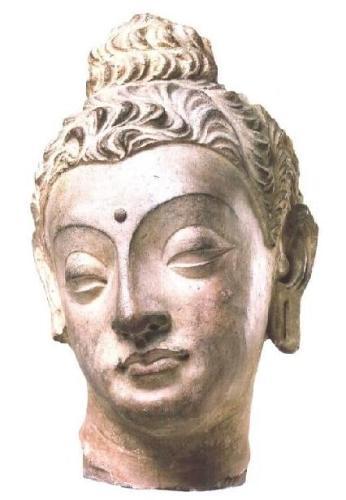 希腊和罗马艺术曾经教给人们用优美的形式去想像神祗和英雄的形象,这也有助于印度人创造他们的救世主形象。表情沉静的佛陀的美丽头像,也是在犍陀罗这一边境地区制作的(图81)。
