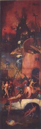 于是就产生了这么一种情况:这个时期最伟大的尼德兰艺术家不是出现在坚持新风格的人当中,而是出现在像德国的格吕内瓦尔德那样、不肯被拖入来自南方的近代艺术运动的艺术家当中。在荷兰城市斯海尔托亨博斯('S - Hertogen bosch)就住着那样一位画家,名叫希罗尼穆斯·博施(Hieronymus Bosch)。我们对他所知无几。我们不知他1516年去世时有多大年岁,然而他在1488年成为一个独立的画师以后必定又活跃了很可观的一段时间。正如格吕内瓦尔德那样,博施的作品也表明,当时已经发展起来的最真实地表现现实的绘画传统和成就能够像调转方向一样,转而描绘人的眼睛从未目睹的事物,画出同样合情合理的图画来。他的成名是由于他对邪恶的力量做了恐怖的表现。大概绝不是出于偶然,在那个世纪后期,忧郁的西班牙国王菲力普二世(King Philip II)特别喜欢这位艺术家,他非常关心人的邪恶。图229和图230就是他购买的博施画的一套三连画(triptych)的两翼,至今还在西班牙。在左侧翼,我们看到邪恶正在侵犯人间。创造夏娃之后就是诱惑亚当,然后他俩被逐出乐园;而从高高在上的天空中,我们看到反叛天使的堕落,他们被猛力逐出天堂,像一群可憎的昆虫。在另一侧翼,我们看到地狱的一个景象。那里是恐怖加恐怖,有烈焰、刑罚和各种各样半兽、半人或半机械的可怕的恶魔,它们在永不停息地折磨、惩罚那些可怜的有罪的灵魂,一个艺术家成功地把曾经萦绕于中世纪人们心灵之中的那些恐惧,转化为可感知的具体形象,这还是第一次,大概也是惟一的一次。这一项成就大概只能恰恰出现在那一时刻,那时旧的观念仍然强大,而近代精神已经为艺术家提供了把他们所看见的事物表现出来的方法。看来希罗尼穆斯·博施本来可以在他的某一幅地狱画中,写上杨·凡·艾克在他的阿尔诺芬尼订婚的宁静场面中写出的那句话:“我曾在场。”