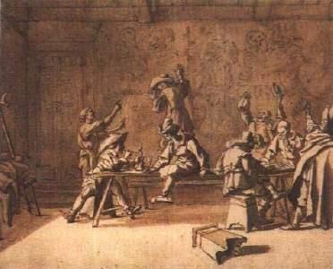 17世纪罗马的一家艺术家的小酒馆,墙上画满了漫画