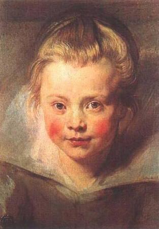 1608年鲁本斯回到安特卫普时31岁,该学的东西都学到手了;在掌握画笔和色彩方面,在表现人体和衣饰、甲胄和珠宝、动物和风景等方面,他都是那么纯熟,在阿尔卑斯山以北独步一时。他的佛兰德斯前辈们通常是画小幅画。他在意大利养成的嗜好是以巨大的画幅去装饰教堂和宫殿,这正适合上层教会人士和君主的趣味。他已经学会在大面积的画幅上布置人物以及使用光线与色彩去加强总体效果的技术。图256是为安特卫普一座教堂的主祭坛上的一幅画而准备的速写,显示出鲁本斯对意大利前辈们研究得多么精深,发展他们的观念有多么大胆。这又是圣徒们环绕着圣母那久负盛名的古老主题,在威尔顿双连画(见216-217页,图143)、贝利尼的“圣母”(见327页,图208)或者提香的“佩萨罗的圣母”(见330页,图210)等作品的创作年代,艺术家已经为这个主题费过心血。为了看出鲁本斯多么自由而轻松地处理这项古老的任务,再翻出前面那些插图看一看还是有意义的。一看就清楚,跟以前那些画相比,鲁本斯这幅画有更多的动作,更多的光线,更大的空间,以及更多的人物。一群兴高采烈的圣徒们正在向圣母高踞的宝座涌去,在前景中有主教圣奥古斯丁(St Augustine)、殉教者圣劳伦斯(St Laurence)(手里拿着他曾在上面受刑的炮烙架)和托伦提诺(Tolentino)的修道士圣尼古拉斯(St Nicholas),他们把看画者一直引向他们礼拜的对象。圣乔治带着龙,圣塞巴斯提安带着箭筒和箭,满怀激情地互相对视,一个武士手拿殉难的棕榈叶,就要在宝座前下跪。那一组妇女中有一个是修女,她们正在欣喜若狂地仰望中心场面,在那里一位年轻姑娘由一个小天使扶助,正在跪下去接受那小圣婴的一个指环,圣婴在母亲膝上向她弯下身来。那是圣凯瑟琳订婚的传说,她在幻景中看到了这样的场面,认为自己就是基督的新娘。圣约瑟从宝座后面仁慈地看着,圣彼得和圣保罗二人,一个可以由钥匙辨认出来,一个可以由佩剑辨认出来,正站在那里沉思。他们跟另一边圣约翰的高大形象形成鲜明有力的对比,圣约翰独自站在那里,全身浸沐着光线,欣喜地举臂赞美,两个可爱的小天使正向宝座的台阶上拖他那不愿意走的羔羊。另一对小天使从天上冲下来要把一顶桂冠放到圣母的头上。看完局部,我们必须再一次端详整个画面,欣赏那股大气磅礴的动势,鲁本斯用这动势竟然把所有的人物都结合在一起,给予整个画面一种欢乐的、节日的隆重气氛。能够以这样准确的手眼设计这样巨大画面的画家,自然很快就有许多订做绘画的生意,以致一个人应付不了。然而这并没有难住他。鲁本斯有巨大组织能力和巨大魅力,许多有天资的佛兰德斯画家都以能在他的指导下工作、从而跟他学习为荣。如果订做一幅新画的要求来自某个教堂,或者来自欧洲的某个国王或君主,他有时会只画一幅着色的小速写(图256就是为一幅大型构图所画的一幅着色速写),由他的学生和助手把那些想法摹绘到巨大的画布上。只有在他们按照他的想法涂出底色、着上色彩以后,他才可能再拿起画笔在这里修润一个面孔,在那里修润一件绸衣,或者把对比过于生硬之处修润得柔和一些。他自信他的笔法转瞬就能赋予任何东西以生命,事实也确实如此。这正是鲁本斯的最大的艺术奥秘——他的魔法般的技巧能使所有的东西栩栩如生,热情而欢快地活起来。在他遣兴而作的某些简单的素描(见16页,图1)和绘画中,我们能够很好地评价和欣赏这种技艺。图257是一个小姑娘的头像,可能是鲁本斯的女儿。这里根本没有构图的诀窍,没有华服盛装和缕缕光线,只有一个孩子的简单的en face(迎面)肖像。然而她似乎在呼吸,心也在跳动,好像活人一样。跟这幅画一比,前几个世纪的肖像不知怎么会看起来冷淡而不真实——不管它们可能是多么伟大的艺术品。试图分析鲁本斯怎样赋予画面欢快的生命力是枉费心机的,但是那必然跟大胆、精细地处理光线有一定关系,他用光表示出嘴唇的湿润、面部和头发的造型。他比前辈提香更多地使用画笔作为主要工具。他的绘画不再是使用色彩仔细塑造的素描,它们使用“绘画性的”(painterly)手段做出,这加强了有生命和活力的感觉。