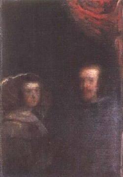 这到底是什么意思呢?我们也许永远不得而知。但是我想把它设想为远在照相机发明之前委拉斯开兹所捕捉住的现实的一个瞬间。大概公主被带到御前消除国王夫妇静坐画像的烦闷,而国王或是王后对委拉斯开兹说这就是值得一画的题材。君主的话总是被当作命令,我们可以把这一幅杰作的出现归因为君主有这么一个偶然的愿望,而这个愿望只有委拉斯开兹才有能力转化为现实。
