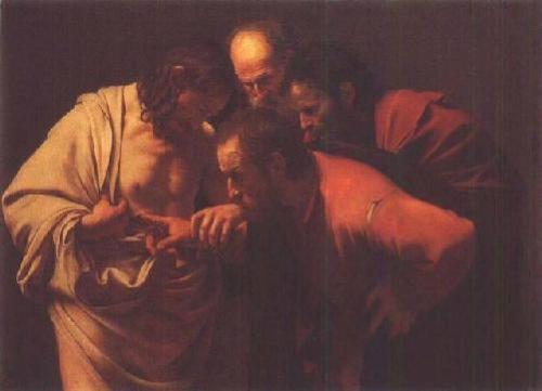 无论我们对卡拉奇的方法感觉如何,卡拉瓦乔及其支持者对那些方法的评价无疑不高。这两位画家的关系确实很好——对于卡拉瓦乔来说,那可非常难得,因为他脾气狂放暴躁,动不动就发火,甚至还用匕首捅人。但是卡拉瓦乔的作品却跟卡拉奇走的路线不同。在卡拉瓦乔看来,害怕丑陋似乎倒是个可鄙的毛病。他要的是真实。像他眼见的那样真实。他丝毫不喜欢古典样板,也丝毫不重视“理想美”。他要破除程式,用新眼光来考虑艺术(见30-31页,图15、图16)。有些人认为他主要是力图震惊公众;认为他对任何一种美和传统都毫不重视。他是最先遭到这种指责的画家之一。而且是艺术观点被批评家们归纳为一句口号的第一位画家;他被贬斥为“自然主义者”(naturalist)。实际上,卡拉瓦乔是一位伟大、严肃的艺术家,无意糜费时间去引起轰动,在批评家们说长道短时,他却正忙着工作。从创作到现在的三个多世纪里,他的作品丝毫没有丧失它的大胆性。我们来看一看他画的圣多马(St Thomas)(图252);三位使徒凝视着耶稣,其中的一个把手指戳进他肋下的伤口,看起来真是异乎寻常。可以想像,这样一幅画必然使虔诚的信徒感到缺乏敬意,甚至不可容忍。他们习惯于看到形象高贵、服饰上有美丽衣裙的使徒——而在这里使徒们看起来却像一些普通劳动者,面孔饱经风霜,前额布满皱纹。但是卡拉瓦乔会答复说,他们是年迈的劳动者,普通的老百姓——至于那疑惑的多马的不体面的姿势,《圣经》上本来就有十分清楚的说明。耶稣对他说,“伸出你的手来,探入我的肋旁:不要疑惑,总要信”(《约翰福音》,第二十章,第27节)。