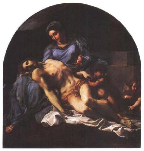 在摆脱了手法主义驻足不前的做法以后,绘画走向了一种比以前大师们的风格具有更丰富前景的风格,这种发展在某些方面跟巴洛克建筑的发展相似。在丁托列托和埃尔·格列柯的伟大作品中,我们已经看到了一些观念正在发展,那些观念在17世纪的艺术中越来越重要,亦即强调光线和色彩,漠视单纯的平衡,偏爱比较复杂的构图;然而17世纪的绘画并不就是手法主义风格的继续。至少那时候的人们不这么认为;他们感到艺术已经走向一条墨守成规的危险道路,必须另辟蹊径。在那个时代,人们喜欢谈论艺术。特别是在罗马,有一些有修养的绅士们乐于讨论当时艺术家中间出现的各种“运动”(movement),喜欢把他们跟较老的艺术家比较,而且参与艺术界的争吵和密谋。对于艺术界来说,这样一些讨论本身就有颇为新颖之处。这种讨论始于16世纪,开始是讨论这么一些问题,例如绘画与雕刻孰优孰劣,或者设计与色彩孰重孰轻(佛罗伦萨人重设计,威尼斯人则重色彩)。到了17世纪,他们的话题就不同了,转而讨论当时的两位艺术家,那两位艺术家从意大利北部来到罗马,他们觉得其方法完全不同。一位是来自波洛尼亚(Bologna)的安尼巴莱·卡拉奇(Annibale Carracci, 1560-1609),另一位是来自米兰附近一个小地方的米凯兰杰洛·达·卡拉瓦乔(Michelangelo da Caravaggio, 1573-1610)。这两位艺术家好像都厌烦手法主义,但是他们克服手法主义的矫饰之处的方式却大不相同。安尼巴莱·卡拉奇出身于研究威尼斯艺术和科雷乔艺术的画家家庭。他到达罗马以后,便对拉斐尔的作品入了迷,对它们大为赞赏。他立志学习那些作品中的某些单纯和美丽之处,而不是像手法主义者那样故意反其道而行之。后来的批评家们说他有意模仿以前所有的伟大画家的长处。其实,他未必就曾设计出那样一种绘画方案(即所谓“折衷主义”方法)。那种作画方案是后来拿他的作品当作样板的学院或艺术学校设计出来的。卡拉奇本人是一位真正的艺术家,接受不了那样一种愚蠢的观念。但是在罗马派系之中,他那一派的战斗口号却是培育古典美。在祭坛画《圣母哀悼基督》(图251)中,我们能够看出他的意图。我们只要回想一下格吕内瓦尔德画的饱受痛苦折磨的基督的身体,就能理解安尼巴莱·卡拉奇是怎样煞费苦心地不让我们想到死亡的恐怖和痛苦的折磨。画面本身就像一个初期文艺复兴画家安排得那样单纯而和谐。然而我们不大会把它错认为一幅文艺复兴时期的作品。画中的光线照射在救世主身体上的方式,对我们的感情的全部感染力,都和以前的作品完全不同,这是巴洛克式风格。人们很容易把这样一幅画斥为情调感伤,但是我们绝对不能忘记作画的意图。这是一幅祭坛画,打算在它前面点上蜡烛供祈祷和礼拜者注目反省的。