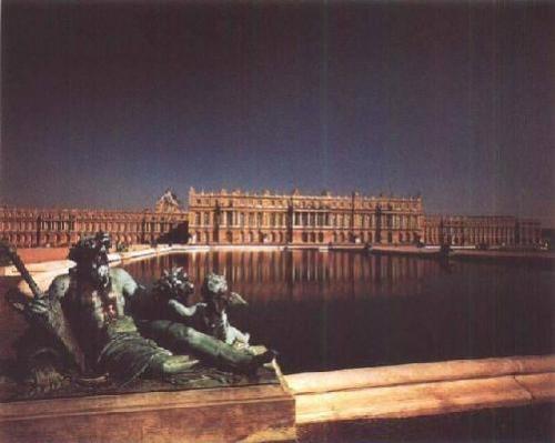 不仅仅是罗马教会发现了艺术有感染和征服人心的威力。17世纪欧洲的国王和君主同样急于显示他们的强权,从而加强他们对人心的控制。他们也想作为一种不同凡俗的人出现,根据神授王权的观念高踞于普通人之上。17世纪后半期最强大的统治者法国的路易十四表现尤其突出,他在政策中处心积虑地利用王权的夸示和显赫。路易十四邀请洛伦佐·贝尔尼尼到巴黎去帮忙设计他的王宫,这绝不是偶然的事情。那个宏伟的规划并没有实现,但是路易十四的另一座王官却成为他的巨大权力的真正象征。那就是凡尔赛宫(Palace of Versailles),大约建于1660年到1680年(图291)。凡尔赛宫非常巨大,照片难以使人对它的外观有正确的认识。它的每一层都至少有123个窗户,朝向花园。花园本身有修剪整齐的林荫道、石瓮和雕像(图292),连同台地和池塘,向乡下延伸达数英里。